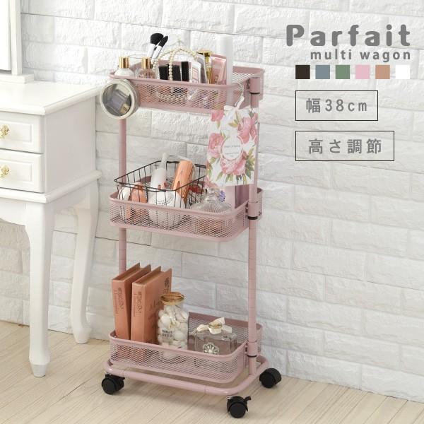 キッチンワゴン 幅42cm Parfait パルフェ 高さ調節 キッチンワゴン キャスター付き 3段 スリム ワゴン おしゃれ 収納 一人暮らし 家具 ワンルーム 省スペース ラック キッチン収納 台所 子ども部屋 くすみカラー 可愛い 男前 スチール コンパクト 収納家具 ラック